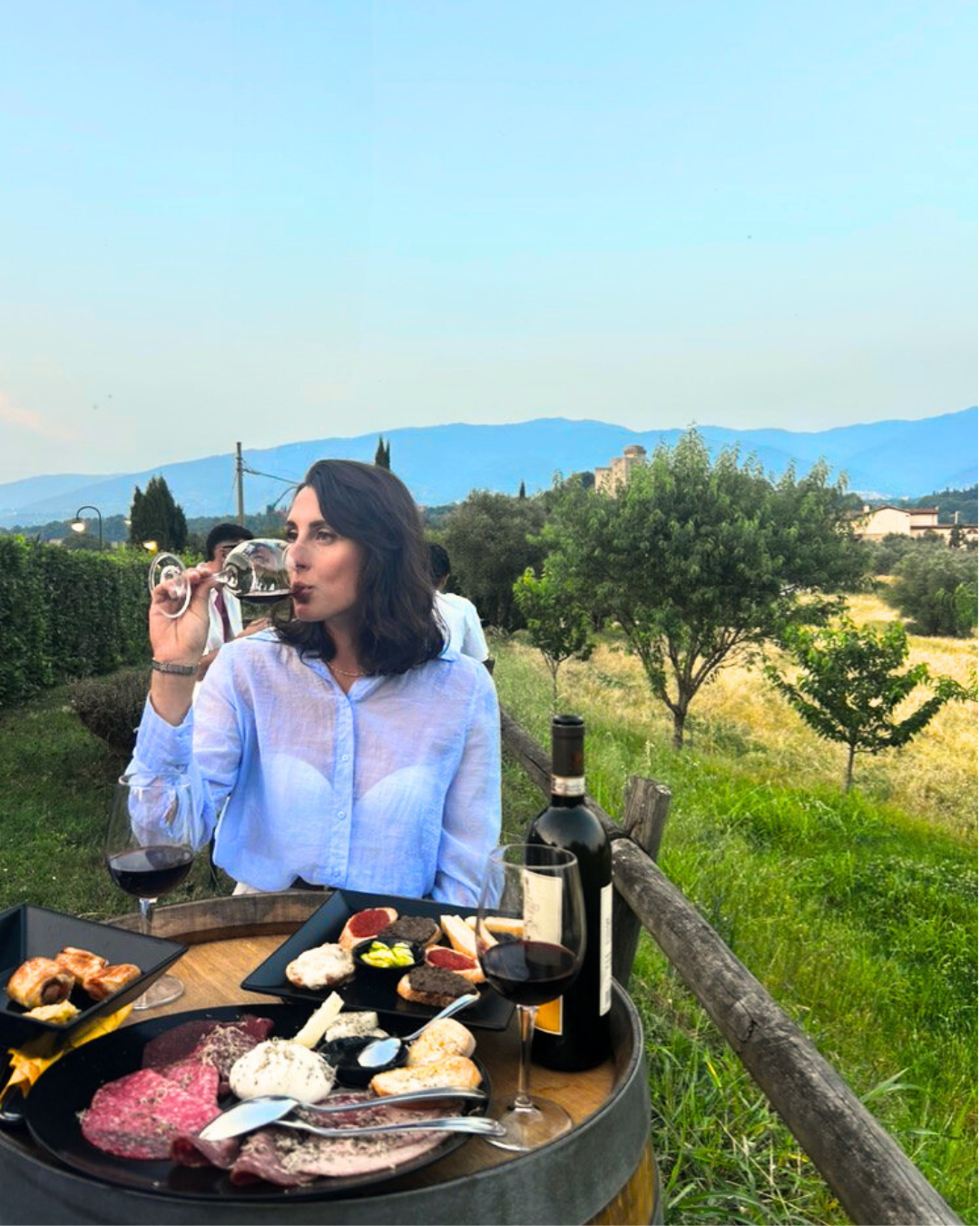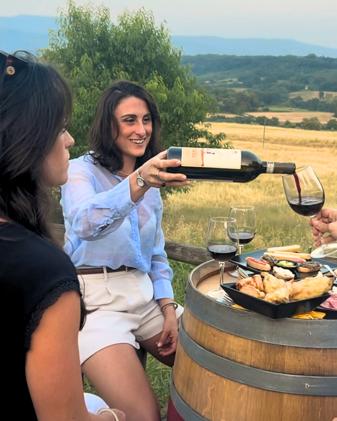 Nella suggestiva cornice del nostro casale, con vista panoramica sulle colline del Valdarno, vi accoglieremo con un ricco buffet di specialità tipiche: crostini misti, salumi e formaggi locali, verdure di stagione e tante altre proposte che celebrano la cucina toscana, accompagnate da un drink incluso.